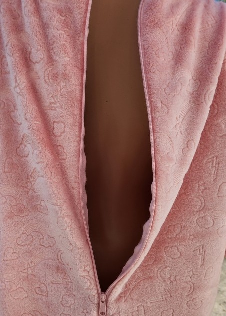 Le Ros de Rosine fait écho à cette douceur tout en conservant la fermeture à glissière centrale qui est au cœur de son design. Cette fermeture à glissière permet à l’aidant de faciliter l’habillage et les soins, avec plusieurs avantages :